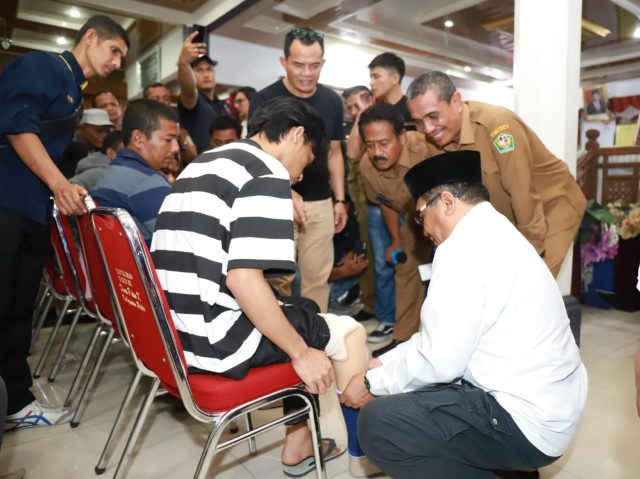 Hariannetwork.com – Sigli – Kementerian Sosial RI (Kemensos) melalui Sentra Darussaadah Aceh Besar dan Pemerintah Kabupaten Pidie menyerahkan Alat Bantu Penyandang Disabilitas (ABPD) berupa kaki palsu dan tangan palsu kepada 19 orang penyandang disabilitas. Calon penerima bantuan ini telah terlebih dahulu dilakukan pengukuran kaki dan tangan palsu.
