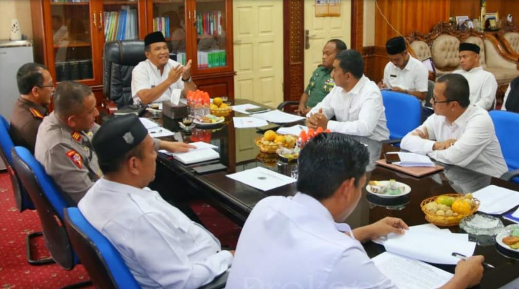 Penjabat (Pj) Bupati Pidie Ir. Wahyudi Adisiswanto M.Si., memimpin berjalannya keberlangsungan rapat yang dihadiri oleh beberapa unsur pemerintahan di Pidie.